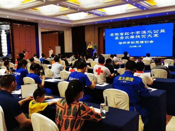 為發(fā)揚人道主義精神,助力脫貧攻堅,促進慈善公益事業(yè)發(fā)展,由安徽省紅十字會主辦、安徽省社會組織聯(lián)合會、安徽省紅十字基金會承辦、安徽文旅集團協(xié)辦安徽省紅十字潺水公益基金眾籌扶貧大賽于5月9日正式啟動。 5月22日,宿州市紅十字會動員培訓(xùn)會在豐大國際酒店舉行,安徽省紅十字基金會負(fù)責(zé)人沈莉、市紅十字會常務(wù)副會長楊玉潔、安徽花亭文化園有限責(zé)任公司負(fù)責(zé)人及市社會組織聯(lián)合會、市工商聯(lián)、市總工會、團市委、市婦聯(lián)、市殘聯(lián)的分管領(lǐng)導(dǎo),各縣區(qū)紅十字會、各行業(yè)協(xié)會和公益合作單位相關(guān)負(fù)責(zé)人等共170余人參加。市紅十字會黨組成員、專職副會長卓海波主持會議 。